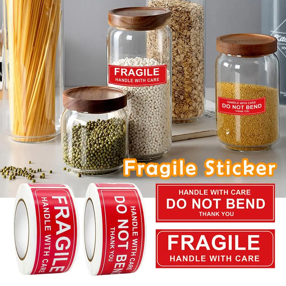 Rollo de etiquetas adhesivas frágiles, 150 Uds., manejar con señales de advertencia de cuidado, etiquetas de agradecimiento, impresión clara de fuerte adherencia para el envío