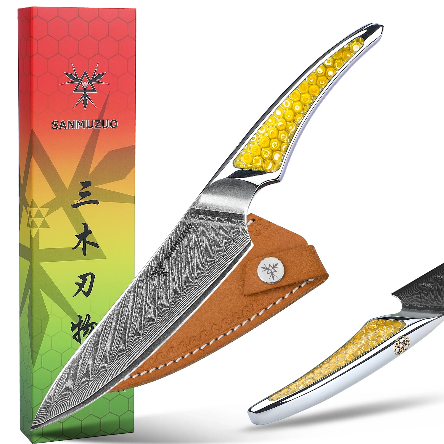 SANMUZUO Cuchillo utilitario Damasco de 5 pulgadas – Cuchillo de chef de cocina de acero con núcleo de VG-10 serie LAS9 – Mango de resina para carne de frutas y verduras