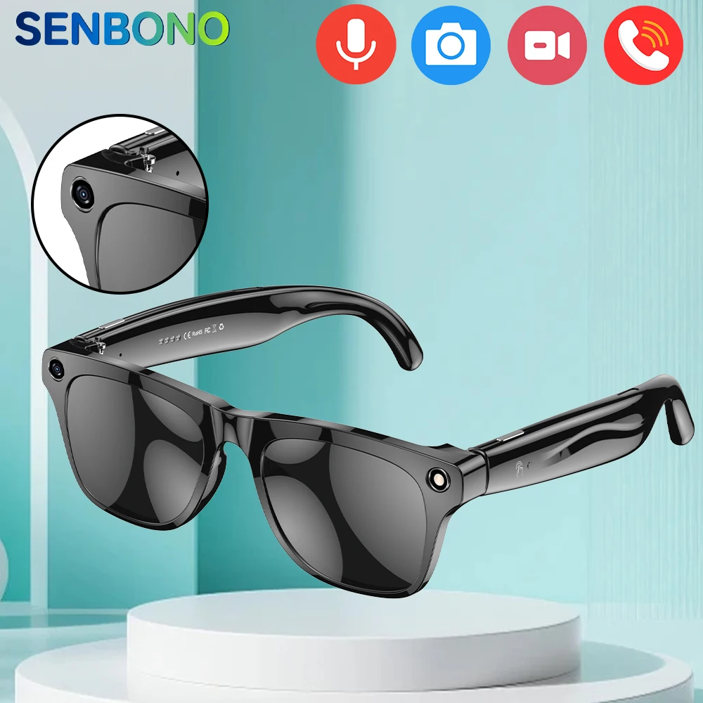 SENBONO AI gafas inteligentes con función de cámara 1M píxeles de alta definición foto vídeo música deportes gafas de vídeo para hombres y mujeres