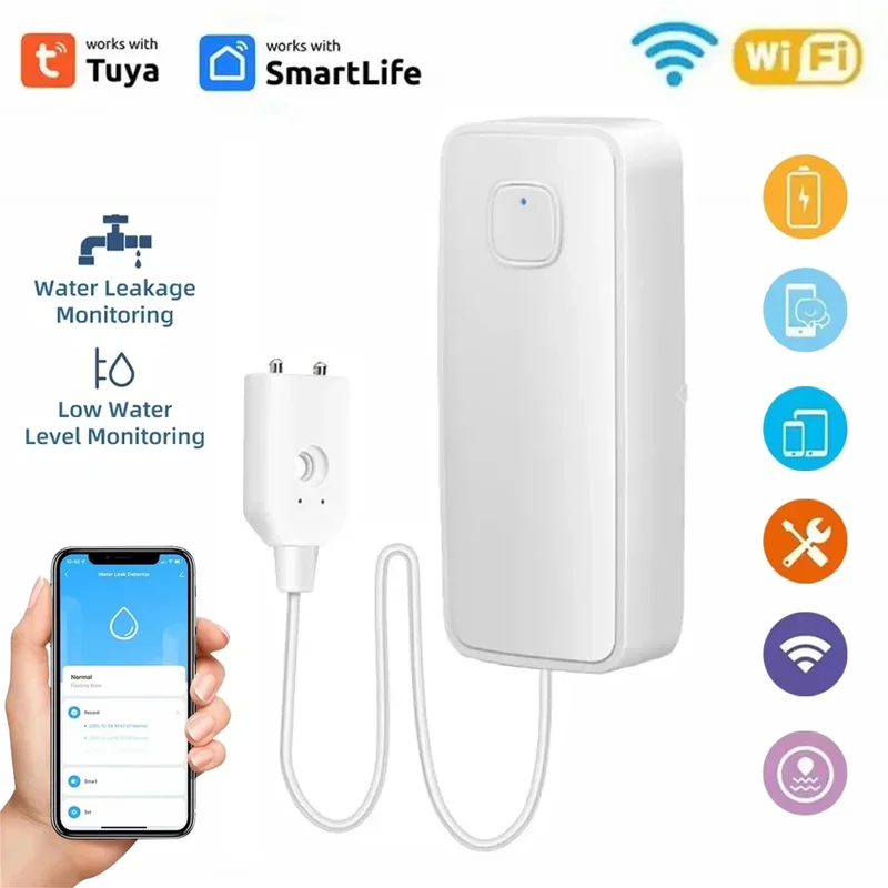 Sensor de fugas de agua con WiFi, Detector de nivel de desbordamiento de agua, 80dB de sonido de sistema de alarma, monitor de protección de seguridad de fugas, Smart Home, Tuya