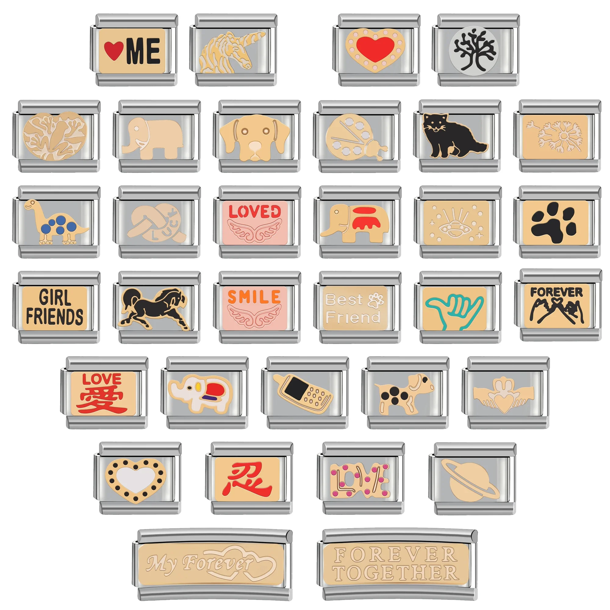 Sé el primero en valorar “Serie mixta, pulsera de acero inoxidable con dije italiano Diy de 9mm, sonrisa eres estrella, amigos amados”