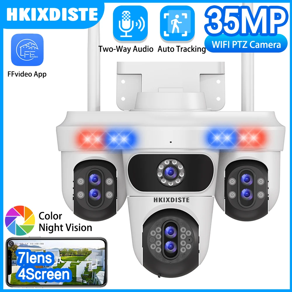 Siete lentes PTZ 10X Zoom forma de bombardero al aire libre 4 pantallas WiFi seguridad Audio bidireccional seguimiento automático cámara CCTV inalámbrica para hogar inteligente