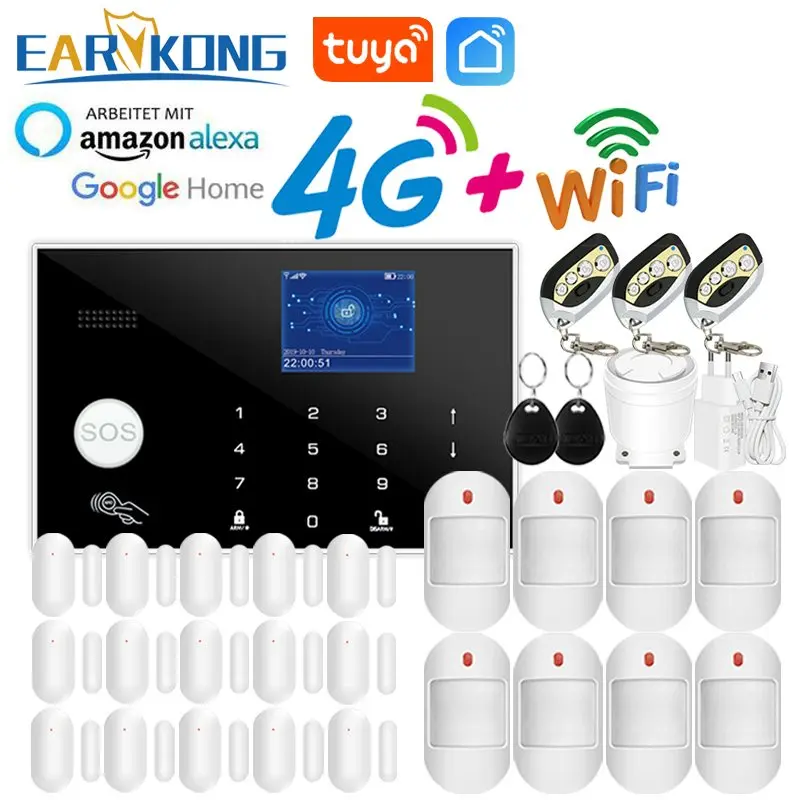 Sistema de alarma antirrobo para el hogar G54 Tuya Wifi 4G, tarjeta RFID, teclado táctil TFT, 11 idiomas, aplicación Smart Life, Sensor inalámbrico de 433MHz