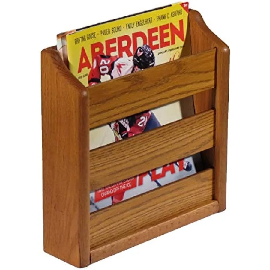 Soporte de pared para mazo de madera o soporte para revistas de roble claro de mesa