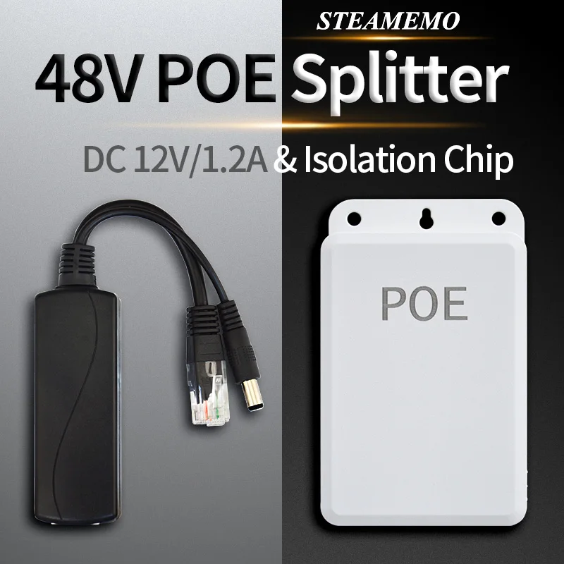 STEAMEMO Divisor POE activo impermeable 48V POE 10/100M entrada a salida CC 12V para cámara IP/AP inalámbrico/CCTV