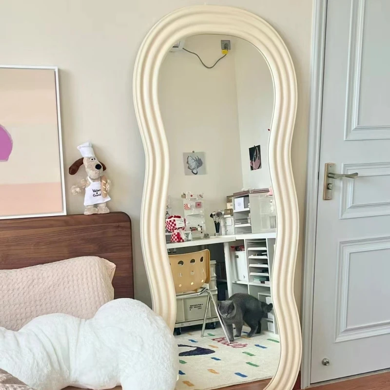 Suelo de viento de crema para mujer contra la pared, espejo de tocador de cuerpo completo, uso doméstico, arte ondulado, colgante de pared, espejo de ajuste