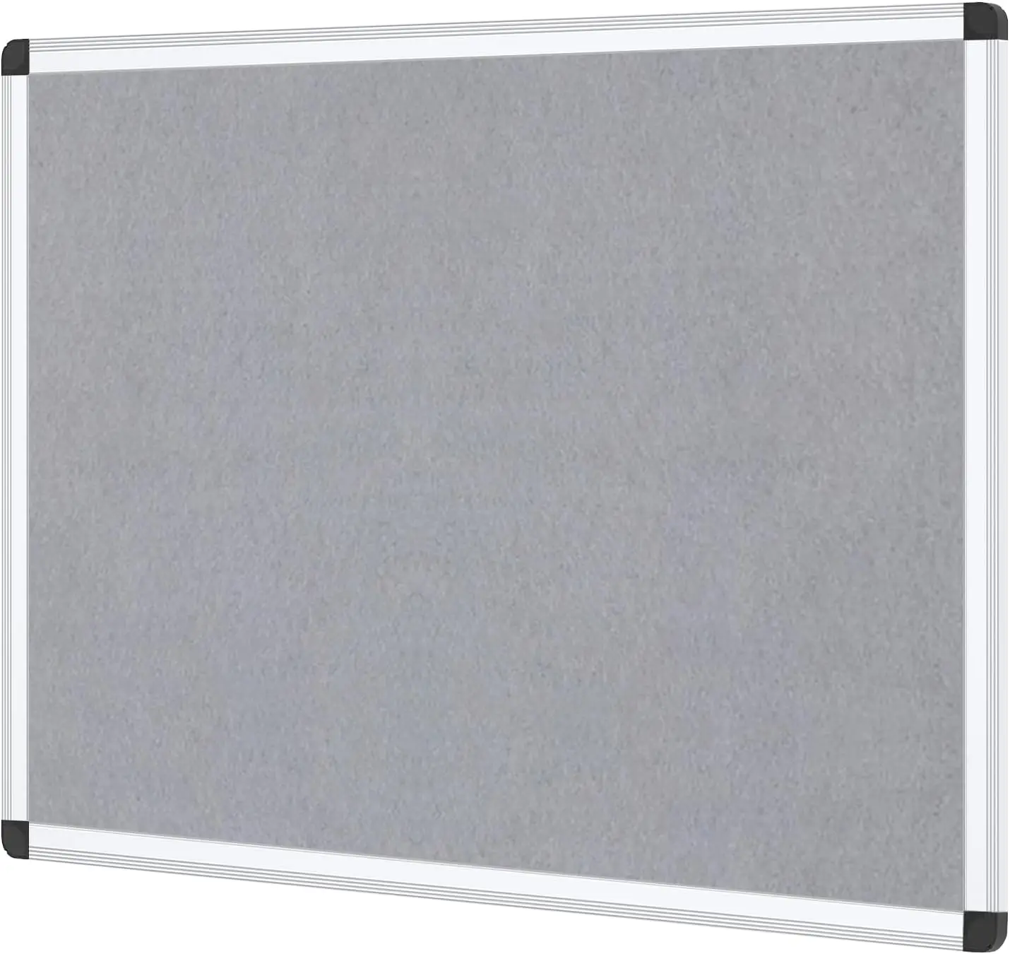 Tablero de anuncios grande de 48×36 pulgadas con marco plateado, superficie de fieltro gris para oficina u hogar