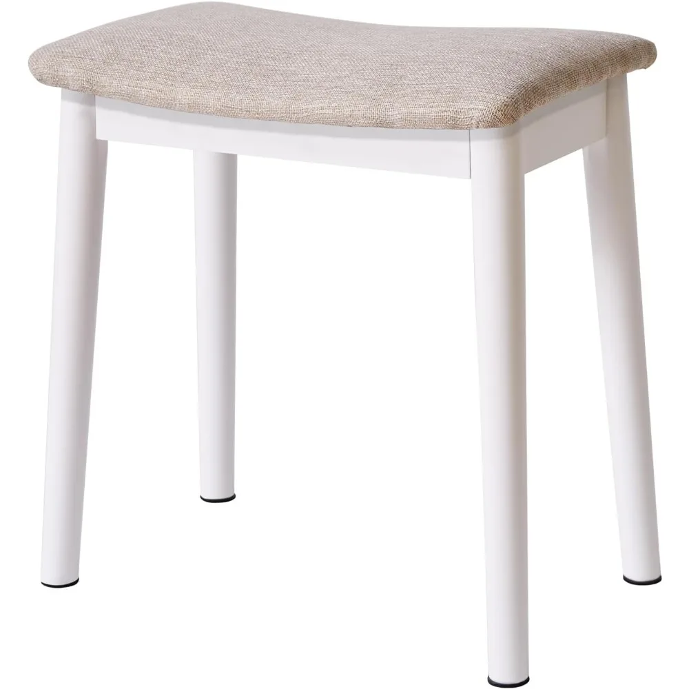 Taburete de tocador tapizado moderno con patas de madera maciza, ideal para piano y tapicería, reposapiés incluido