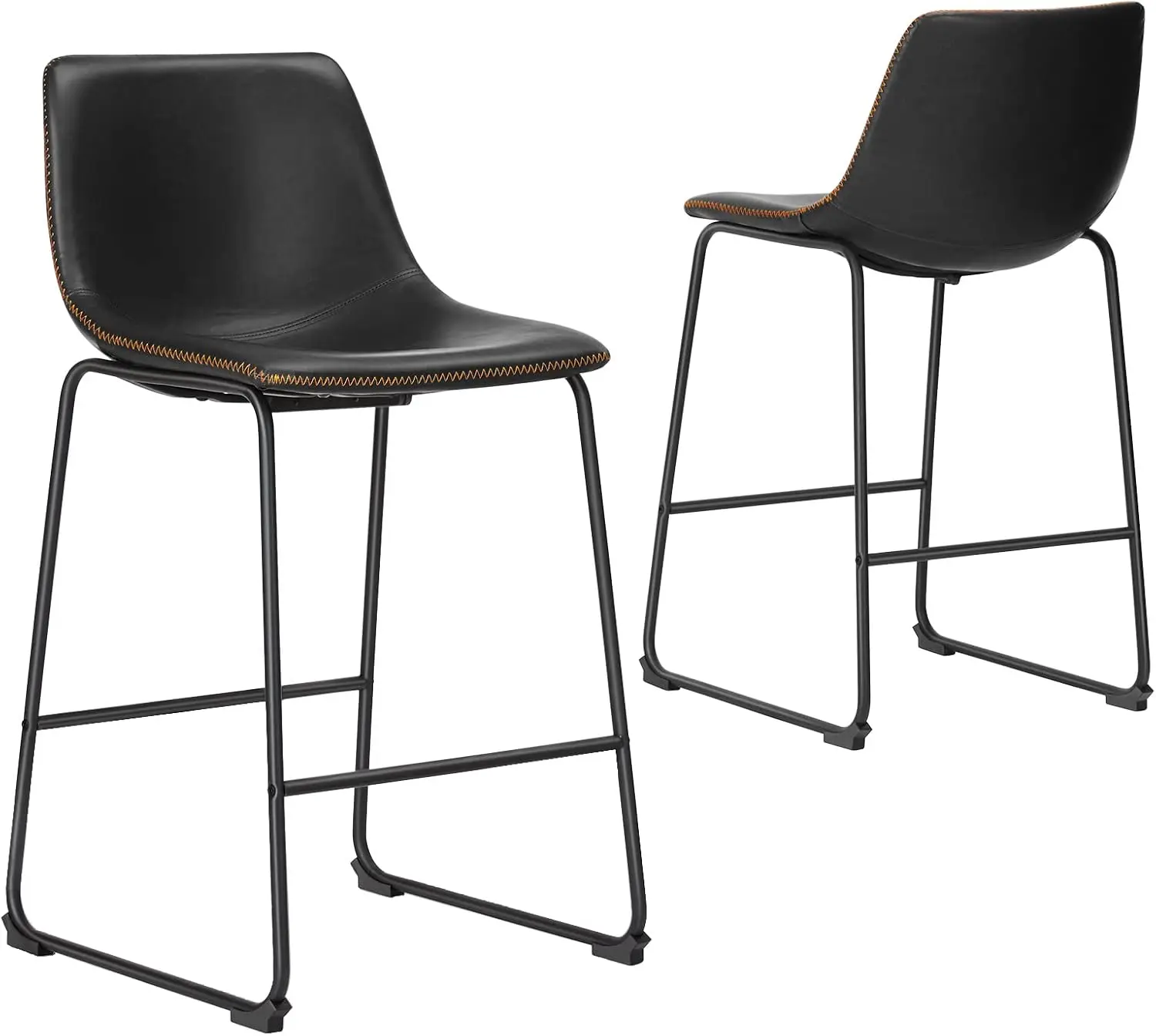 Taburetes de Bar con respaldo, Juego de 2 Taburetes de Bar de altura de mostrador, 26 H, Arml, cuero de imitación Industrial con patas de Metal y