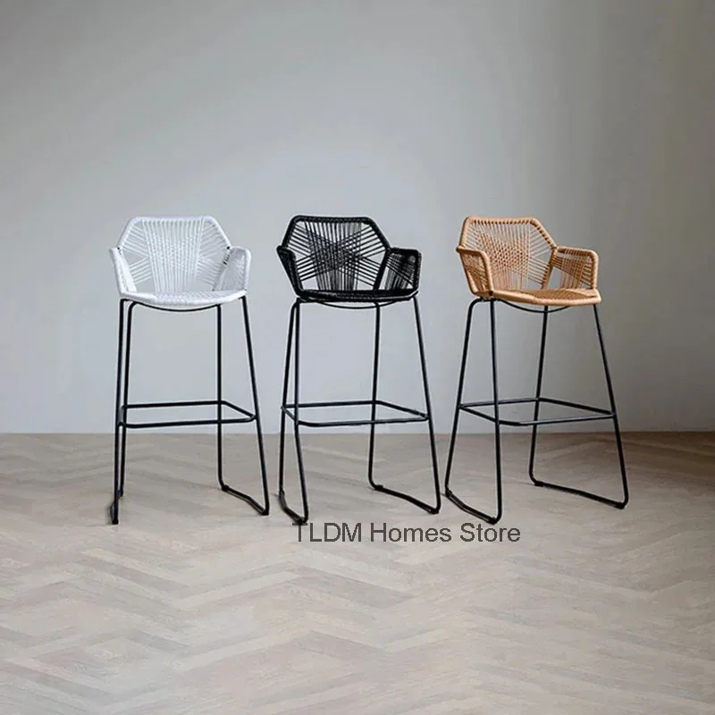 Taburetes de Bar nórdico, silla de Bar de ratán creativa, silla de ratán, sillón trasero, silla de balcón al aire libre, taburete de Bar minimalista moderno de hierro Jj