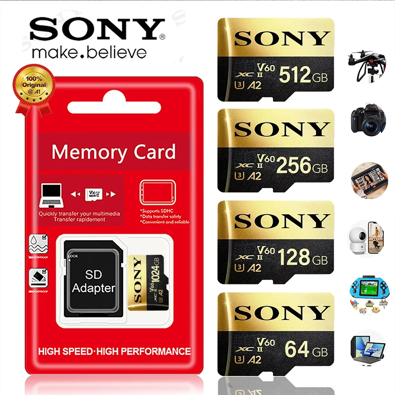 Tarjeta de memoria So *ny 1TB 512GB Micro SD TF 256GB 128GB U1 A1 Micro SD 64GB 100Mb velocidad de lectura Clase 10 Flash Micro tarjeta para teléfono