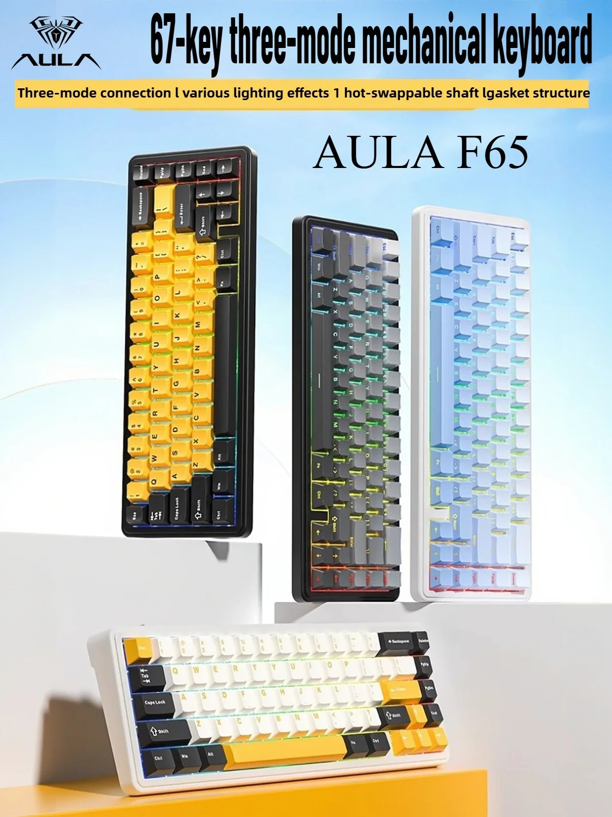 Teclado inalámbrico para juegos AULA F65, diseño 65%, conectividad multimodo, tecla completa, teclado personalizado RGB montado en junta intercambiable en caliente