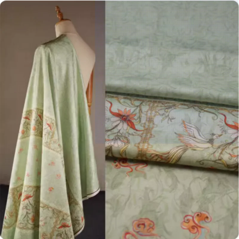 Tela satinada clásica de viento de China, tela de satén con estampado verde claro para vestido, tela Han, Material de costura de ropa, T2125