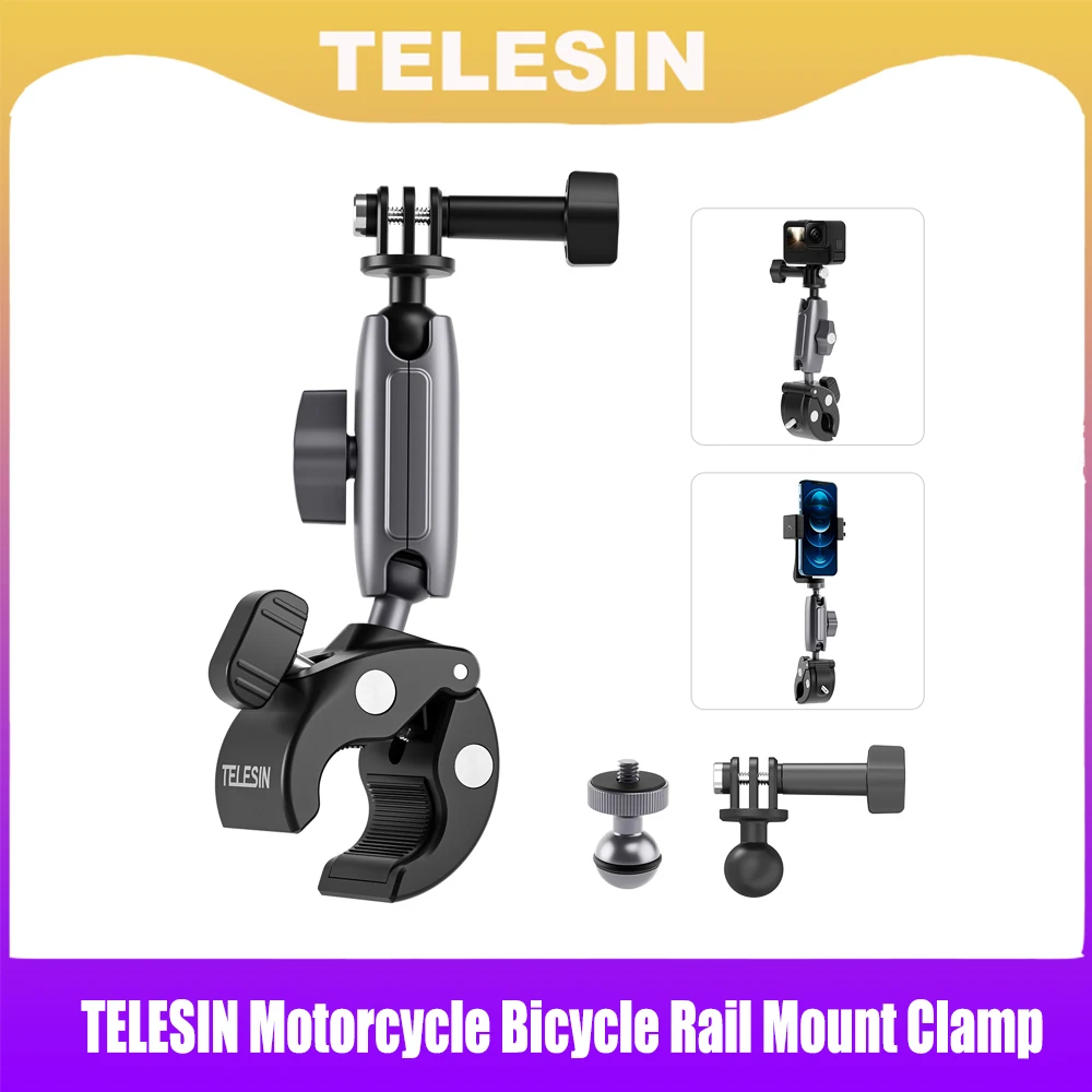 TELESIN-abrazadera de montaje en riel para motocicleta y bicicleta, Clip de montaje de bola de 360 grados para Gopro Hero 11 10 9 8 7 6 para cámara de acción de teléfono