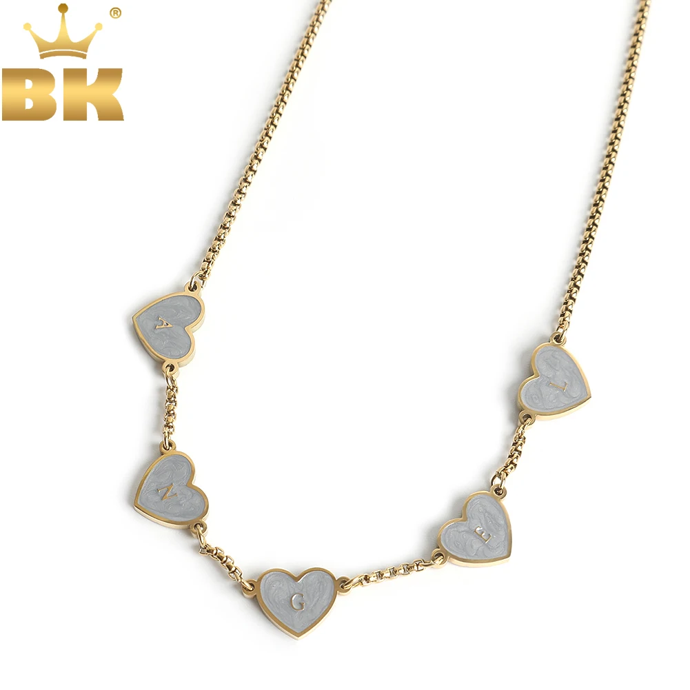 THE BLING KING-caja de letras de corazón esmaltado de acero inoxidable personalizada, collar de cadena, pulsera, Gargantilla, regalos de joyería de Hip Hop