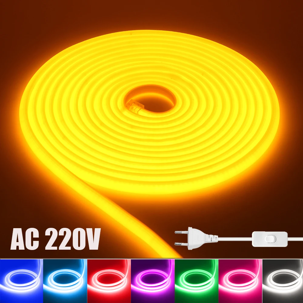 Tira COB AC 220V 288Leds/M IP65 impermeable blanco/azul hielo/rojo/púrpura/rosa/verde decoración del hogar de jardín cinta Flexible luz de neón