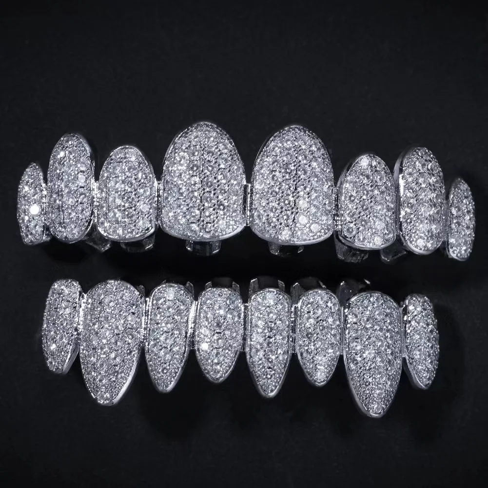 Tirantes de circonita cúbica antialérgicos dorados de súper alta gama: accesorios dentales para rappas, cosplayistas y políticos