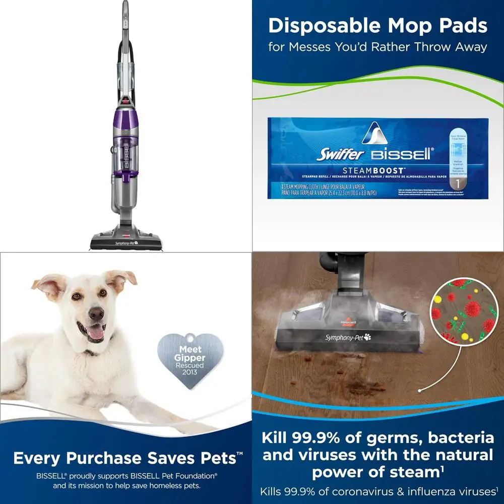 Trapeador de vapor y aspirador para suelos de madera dura y azulejos, almohadillas de microfibra, morado, modelo 1543A