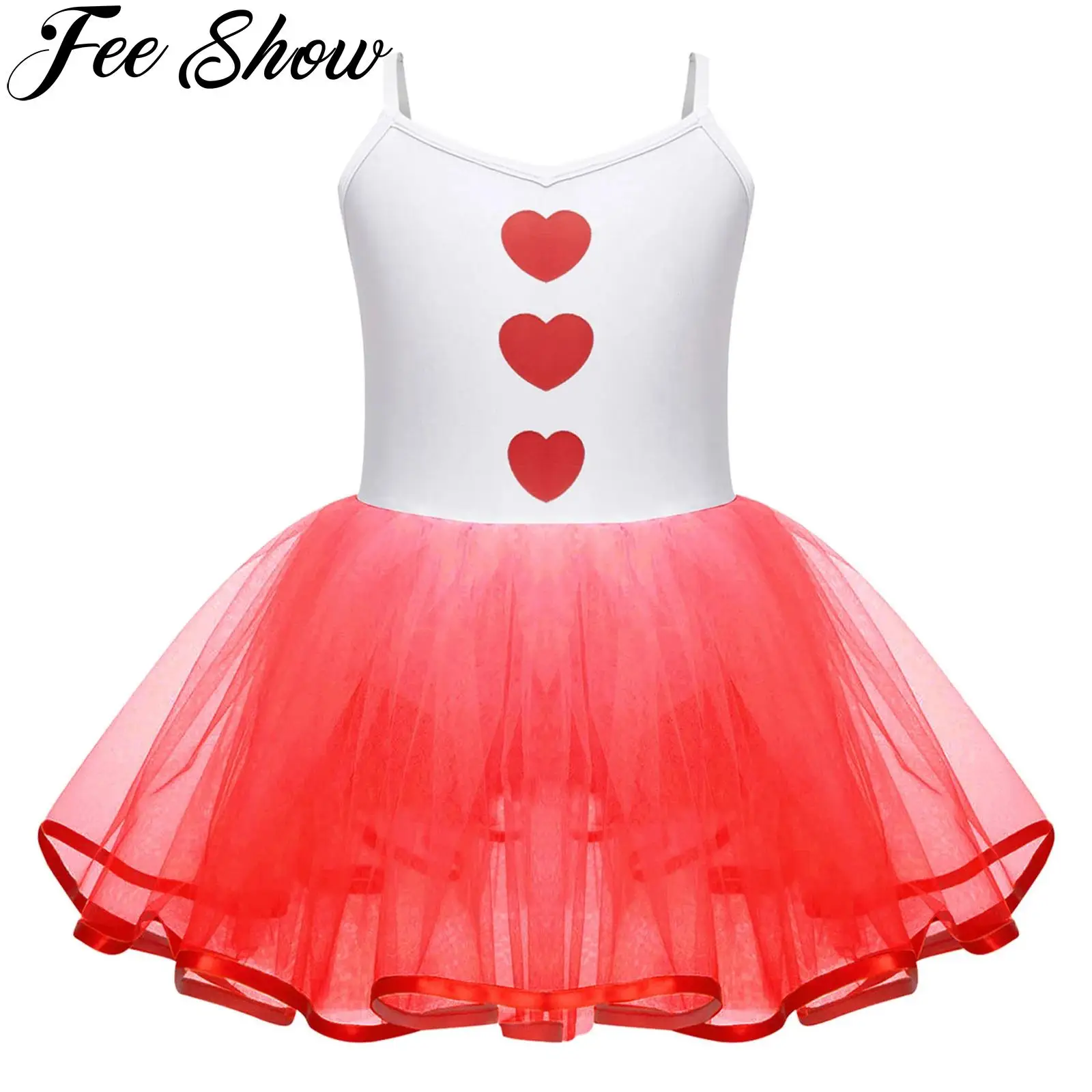Tutú de baile de Ballet para niñas, disfraz de Cupido de Halloween, tirantes finos, estampado de corazón, vestido de leotardo de malla, patinaje, gimnasia, Ropa de baile