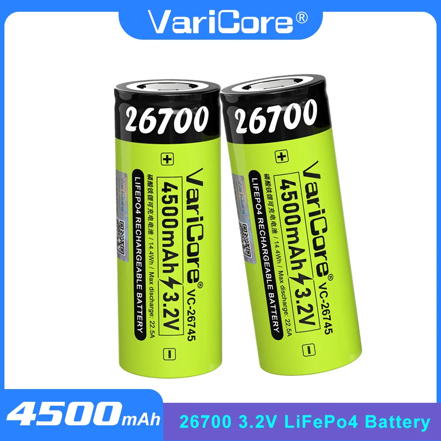VariCore 26700 3,2 V batería recargable de fosfato de hierro y litio 4500mAh descarga continua 22,5A para dispositivos eléctricos de linterna