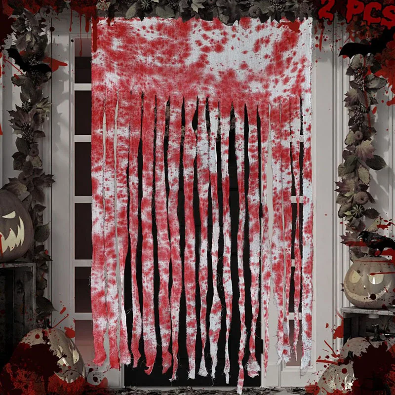 Vendaje manchado de sangre para Halloween, tela de ambiente espeluznante, gasa con estampado de manos manchada de sangre para decoraciones de Halloween, accesorios para puertas y ventanas