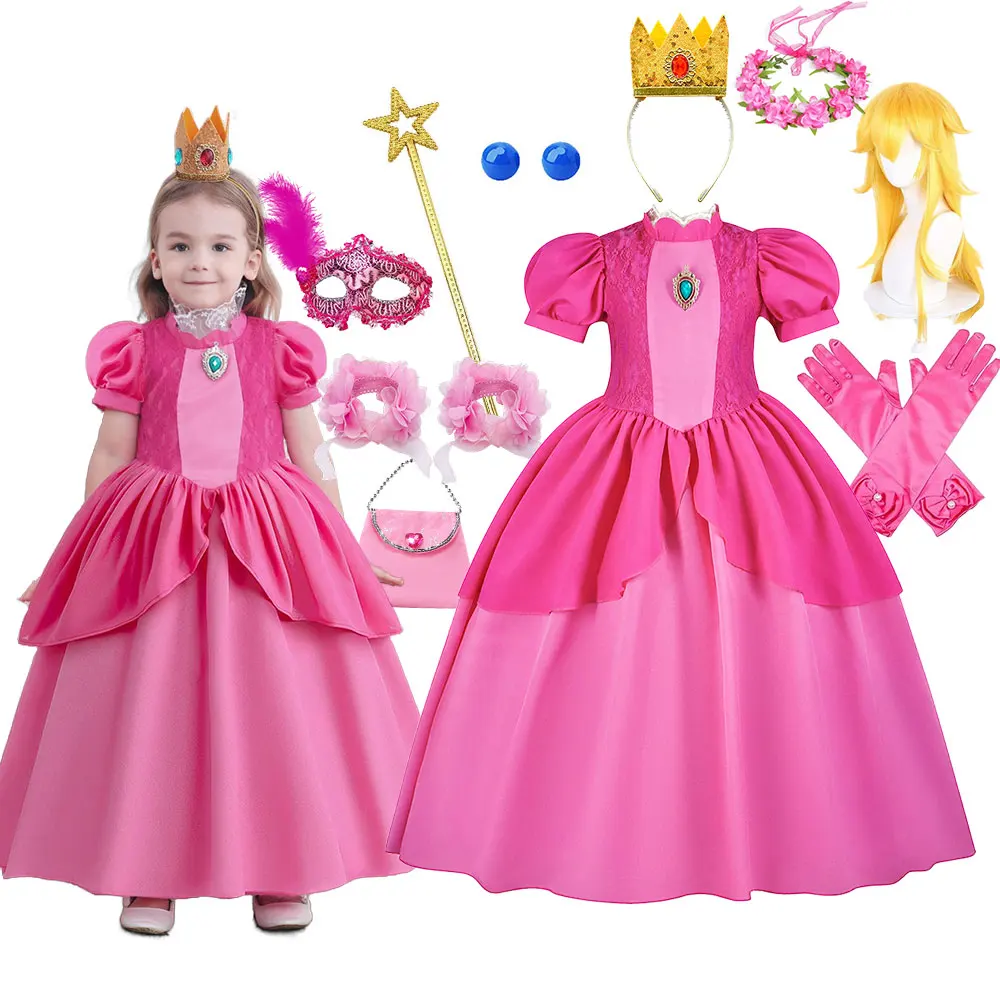 Vestido de princesa Vintage para niños, traje de Anime de película, final feliz, Cosplay de melocotón