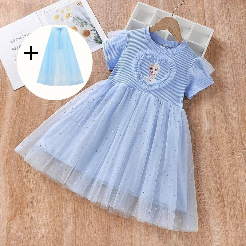 Vestidos infantiles para niñas de verano de manga corta Disney Frozen Elsa fiesta de cumpleaños disfraz de lentejuelas vestido de princesa ropa diaria para niños