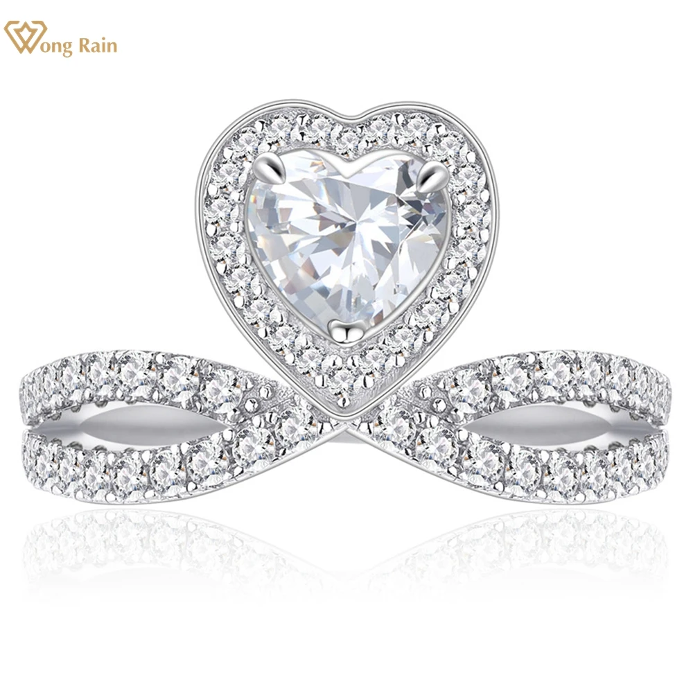 Wong Rain-Anillo de plata de ley 100% 925 con gemas de diamante de alto carbono, joyería de compromiso de boda, corte de corazón, zafiro de laboratorio, 6MM, venta al por mayor