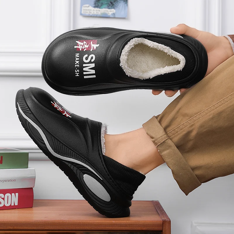 Zapatos de invierno para hombre, zapatos cálidos con forro de felpa, zapatillas de algodón para interiores, plataforma de éxito, zapatos de cocina al aire libre, zapatillas impermeables para casa