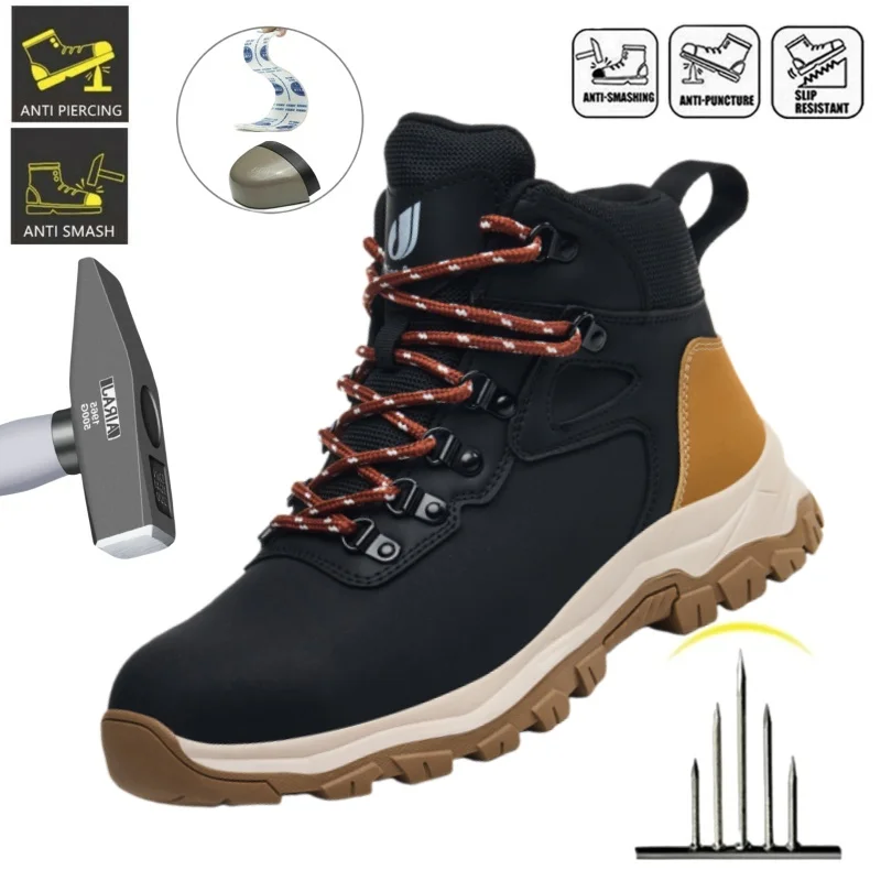 Zapatos de seguridad de protección de cuero para hombre, puntera de acero, zapatos de trabajo antigolpes, botas de seguridad indestructibles antipinchazos